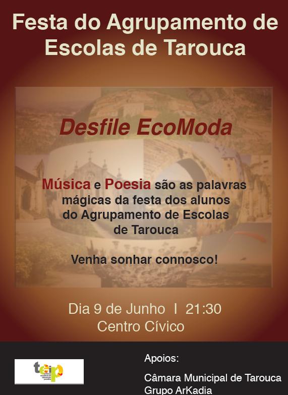Assista ao “Grande Desfile de Eco-Moda”, com Música, Luz e Teatro. Um espectáculo de encerramento do ano lectivo do Agrupamento de Escolas de Tarouca, a realizar no dia 9 de Junho de 2010, às 21,30h no Salão dos Bombeiros de Tarouca e não no Centro Cívico conforme o previsto inicialmente.